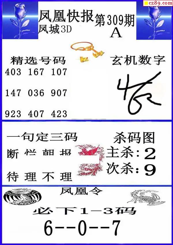 凤凰快报2025309期3d图谜